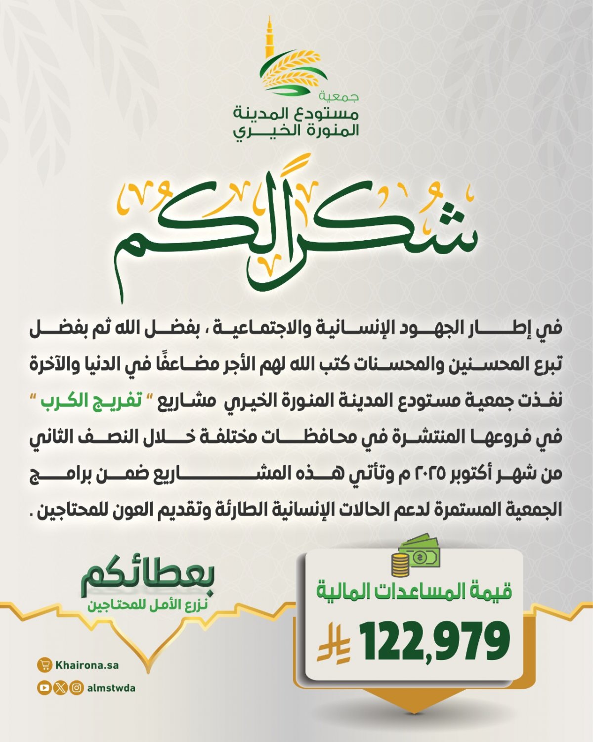 الحمد لله حمداً كثيراً وصلى الله وسلم على افضل المصطفين محمد وعلى اله وصحبه ومن تبعه اما بعد فقد تشرفت في يوم الخميس الموافق 06 / 09 / 1419 هـ بزيارة مستود المدينة المنورة الخيري وشاهدت ما أثلج وأسعد فؤادي من المشائخ والقائمين عليه ولاشك أن هذا العمل عمل جليل وله ثمار عظيمة ويشمل فئة كبيرة من الناس المحتاجين للدعم والذين يعانون من الفقر بشتى صنوفه وألوانه فلا شك انه عمل يفرج هماً ويكشف كرباً ويطعم جائعاً ويكسي عارياً ويدخل الفرح والسرور في نفوس آلمتها الحاجة فأسأل الله العظيم أن يجزي القائمين عليه خير الجزاء وأن يزيدهم توفيقاً وأن يتقبل منهم انه جواد كريم وصلى الله وسلم على نبيبنا محمد وعلى اله وصحبه أجمعين