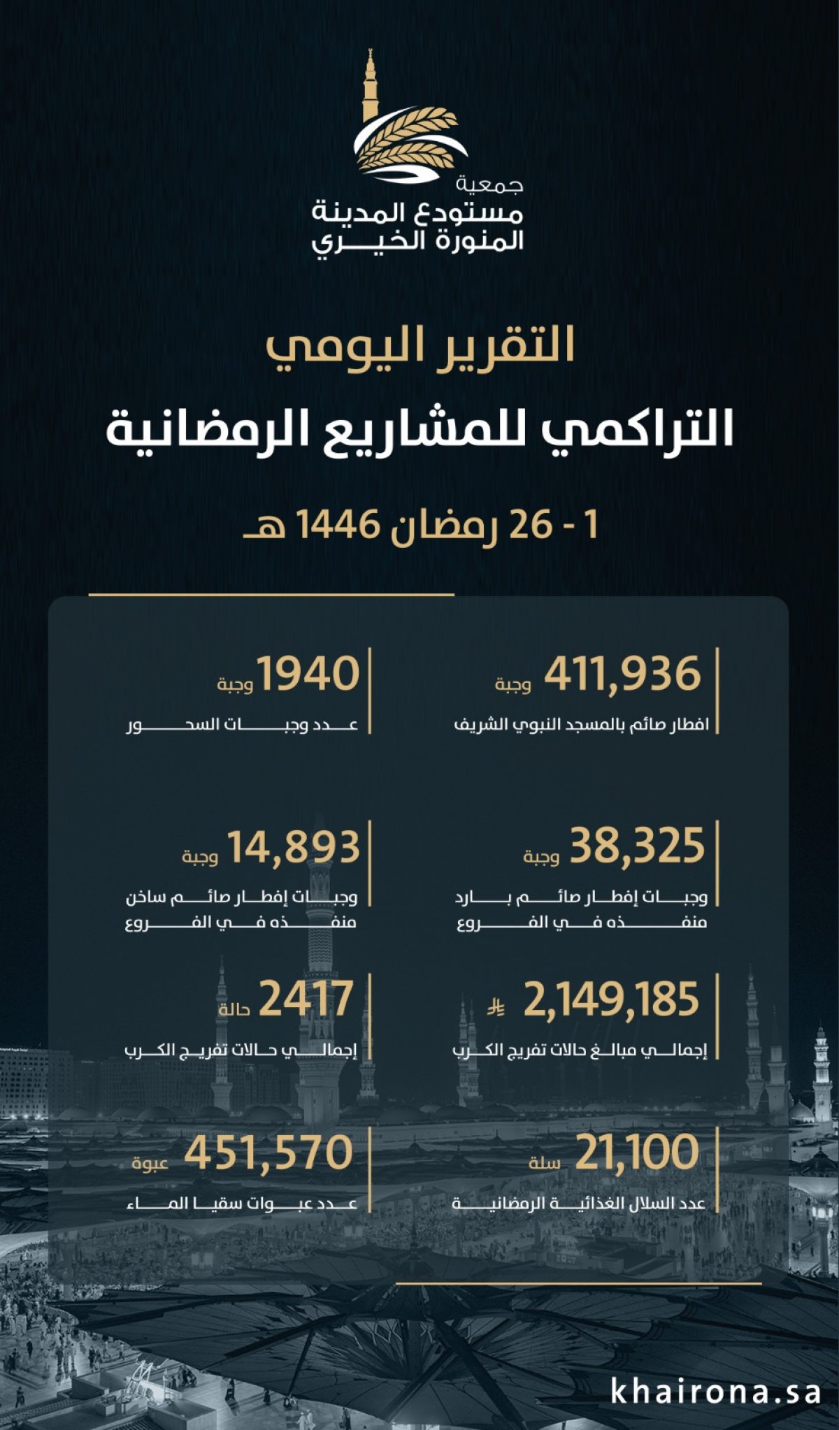 التقرير اليومي التراكمي للمشاريع الرمضانية حتى 26 رمضان 1446هـ