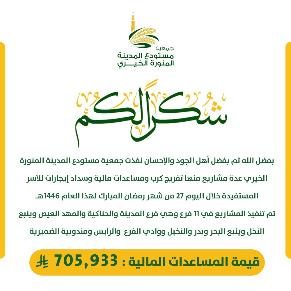 تنفيذ مشاريع تفريج الكرب 27 رمضان 1446هـ